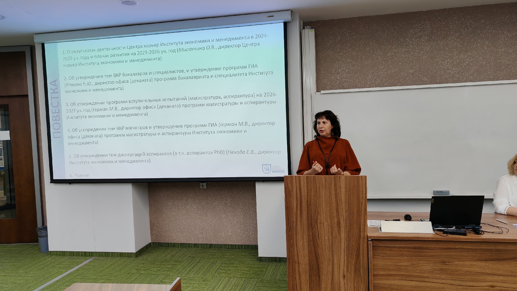 The Chair of the Academic Council and Director of IEM, Evgenia Nekhoda, paid special attention to upcoming changes in the educational activities of the entire university, which will also affect the Institute.