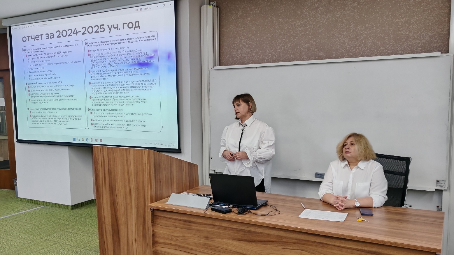 The Director of the IEM Career Center, Olga Misiutina, reported on the center's performance during the previous academic year and its development plans for the near future. In her report, Olga Vladimirovna highlighted the extensive work carried out in student career support and strengthening business ties during the 2024-2025 academic year. Twenty-nine career events were held, including alumni meetings "Path to Yourself," company tours, an internship fair, meetings under the project "Business Lessons with Sber," as well as others events. Over a thousand students participated, with 38 companies involved.