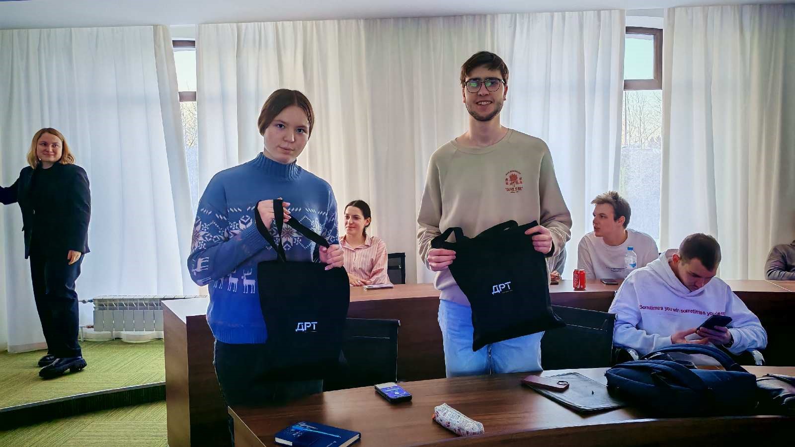 At the end of the session, the expert conducted a short quiz on the topic of the meeting for the attendees. According to Ekaterina, the students handled the tasks well, and the five best performers received gifts from "BST"("DRT").