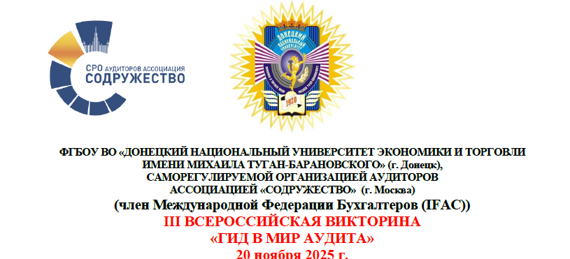 On November 20th, the III All-Russian Quiz "Guide to the World of Audit" was held online on the basis of the Donetsk National University of Economics and Trade named after M. Tugan-Baranovsky with the participation of the Self-Regulatory Organization of Auditors, the "Sodruzhestvo" Association. The online event brought together more than 160 students majoring in economics from 36 Russian universities.