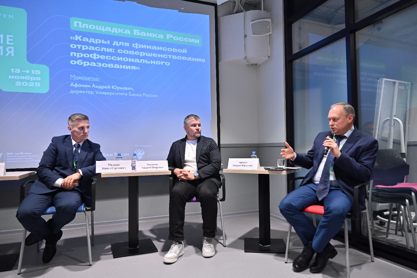 The speakers discussed why financial organizations invest in education, how to evaluate the effectiveness of these investments, how to identify and train the necessary specialists, how to ensure the practical orientation of education, and through what mechanisms business and universities can effectively interact to solve the problem of personnel shortage.