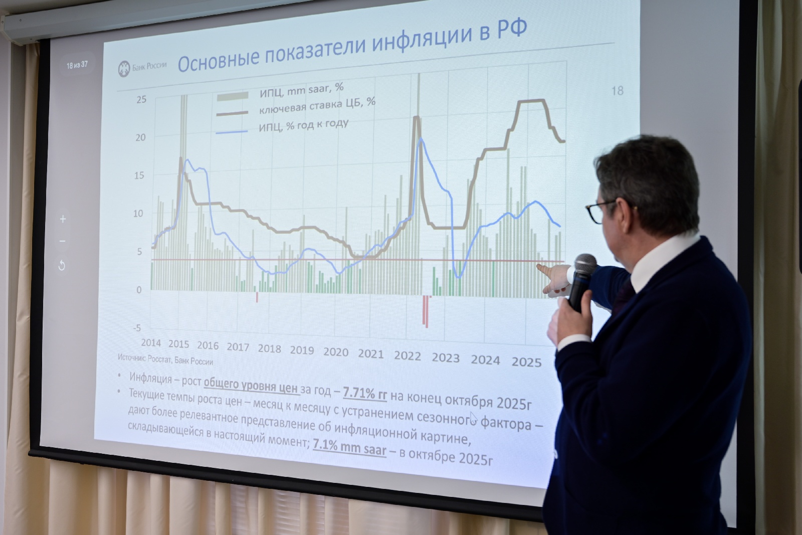 Советник Председателя Банка России Кирилл Тремасов рассказал предпринимателям и исследователям о денежно-кредитной политике регулятора, логике решений по ключевой ставке и их влиянии на экономику страны и региона. Эти встречи стали частью серии диалогов с обществом, которые Банк России проводит по всей стране.