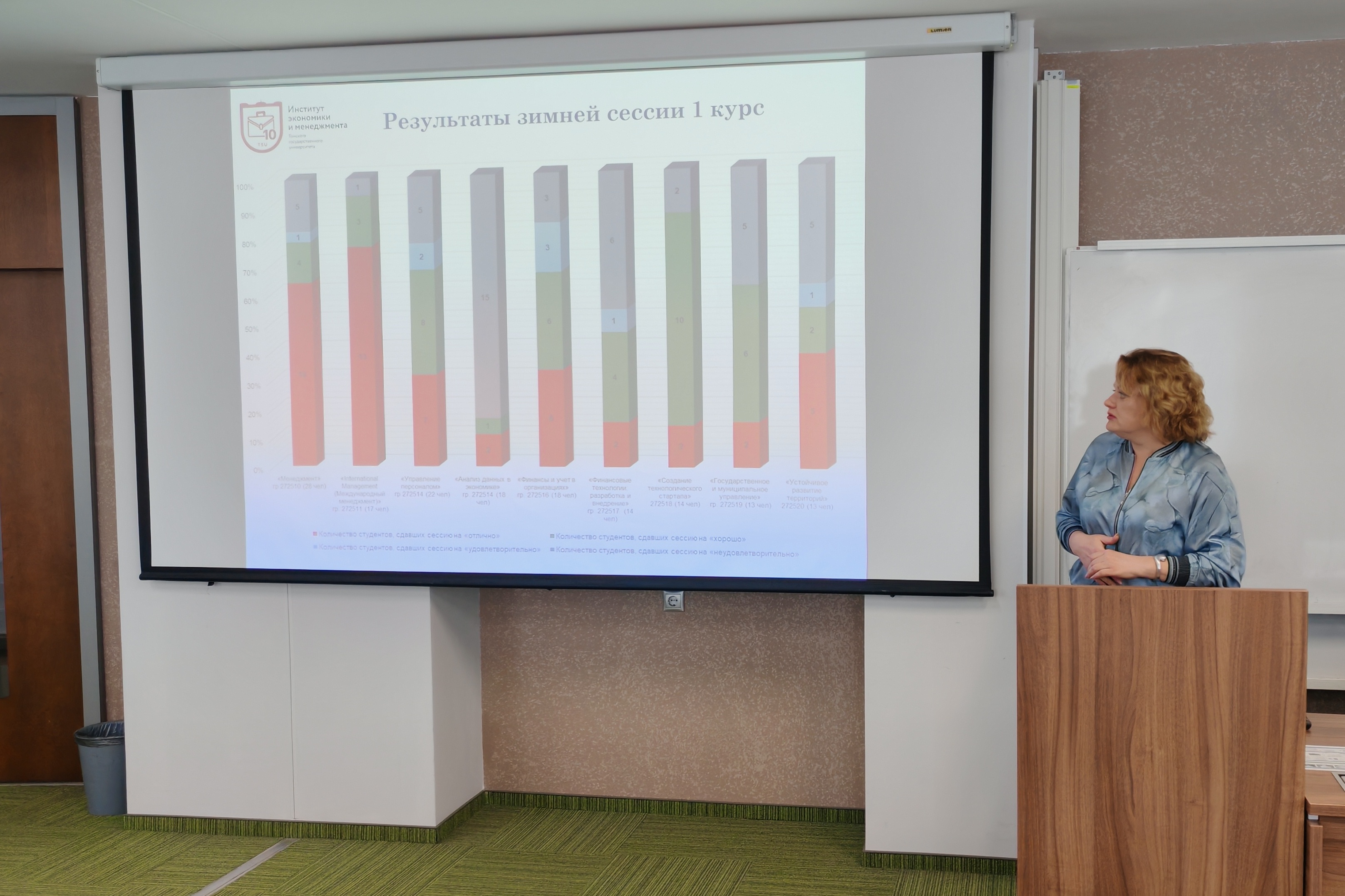 Затем члены Ученого совета перешли к работе по повестке: заслушали отчеты о результатах зимней сессии, об изменениях в учебных планах и отчет о финансовых показателях.