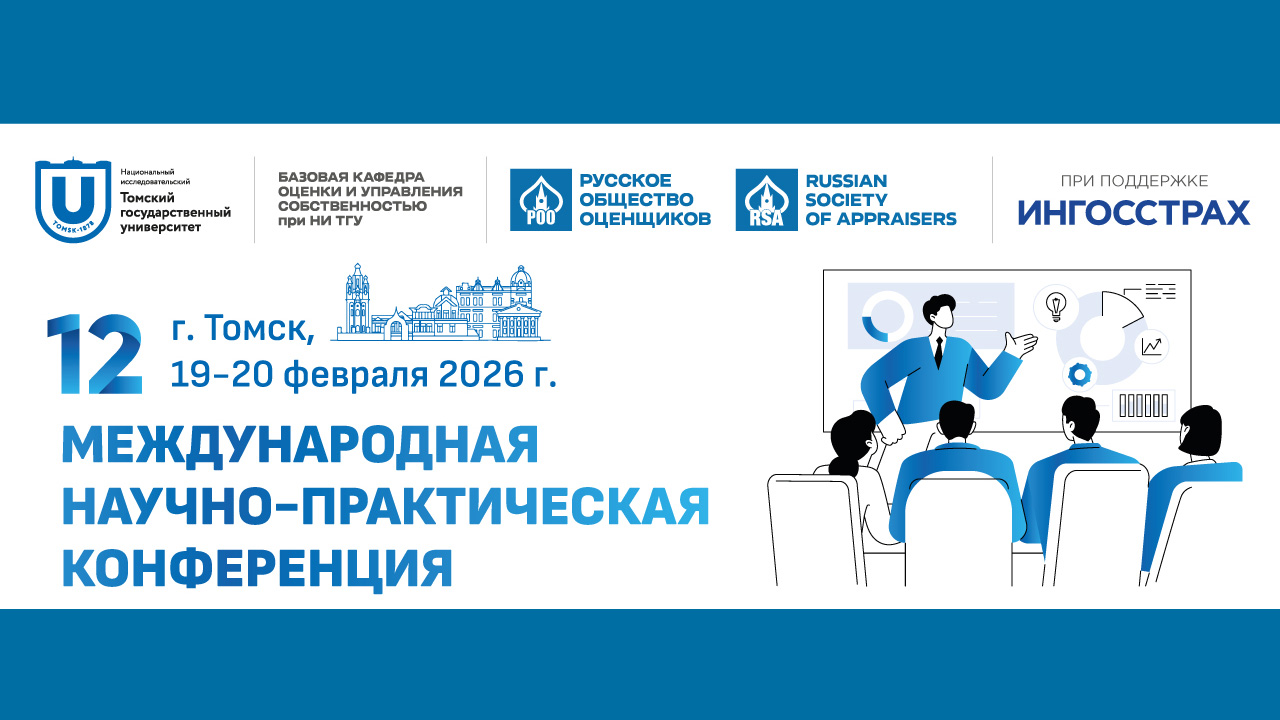 19-20 февраля Томское региональное сообщество Ассоциации «Русское общество оценщиков» проводит в Институте экономики и менеджмента ТГУ уже в 12-й раз Международную научно-практическую конференцию «Профессиональное образование и квалификация оценщика: современные требования и стандарты».